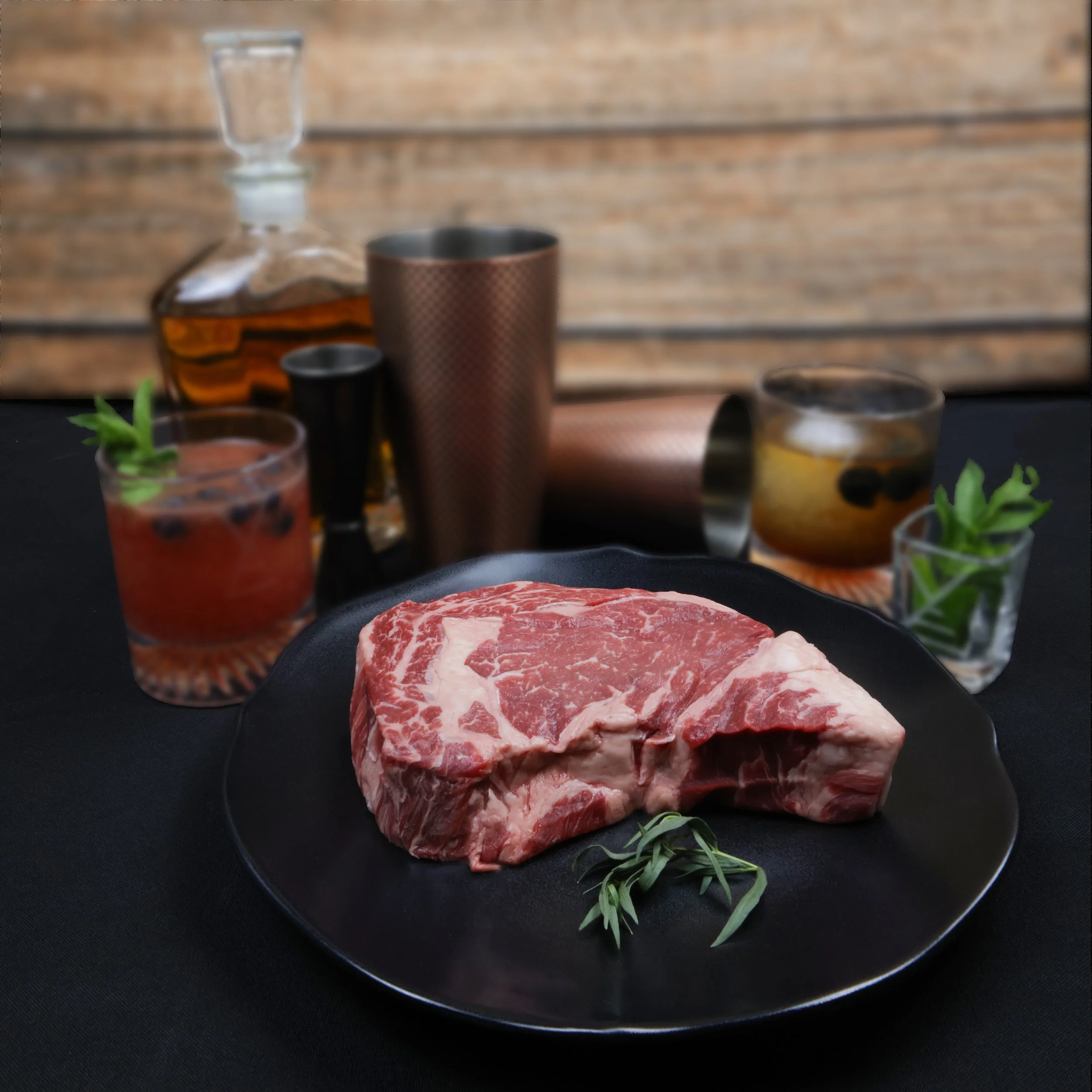 The difference between finishing cattle on grain instead of grass is ultimately the taste. We prefer the enhanced marbling and flavor from grass-raised, grain-finished beef that is dry-aged for 21 days.